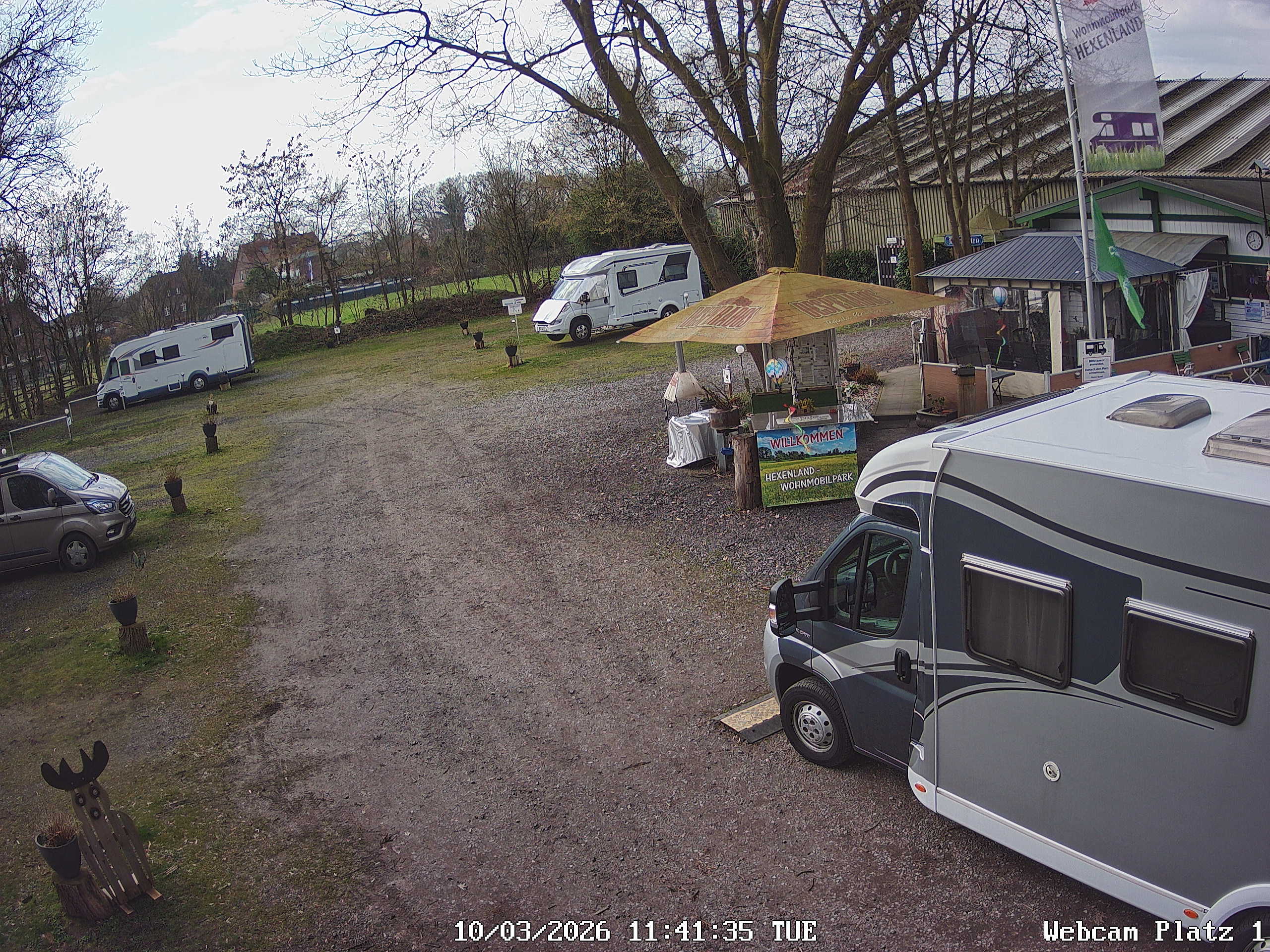 „Die Restaurants liefern auch schon hierher“, sagt Waltraud Dammertz. Selbst der Inder aus Geldern habe sich zuletzt für sechs bis acht Personen auf den Weg gemacht. Wenn Hochbetrieb auf dem Platz ist, dann sehe man die Lieferdienste auch mehrmals täglich. Geliefert werde bis an die Tür des Wohnmobils, so Theo Dammertz. „Verhungern kann hier keiner“, bestätigt seine Frau. Außerdem steht auf dem Platz noch der Automat vom Bisselshof. Unter anderem können da Eier, selbstgemachte Nudeln und die passenden Soßen erworben werden. Das Ehepaar aus Goch nutzt aber auch den Weg zum Hof selbst für einen kleinen Spaziergang um sich vor Ort umzuschauen.